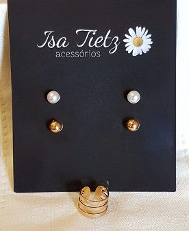 Kit com dois pares de brincos, sendo um de pérola e outro com o banho que escolher (dourado, grafite ou prata).